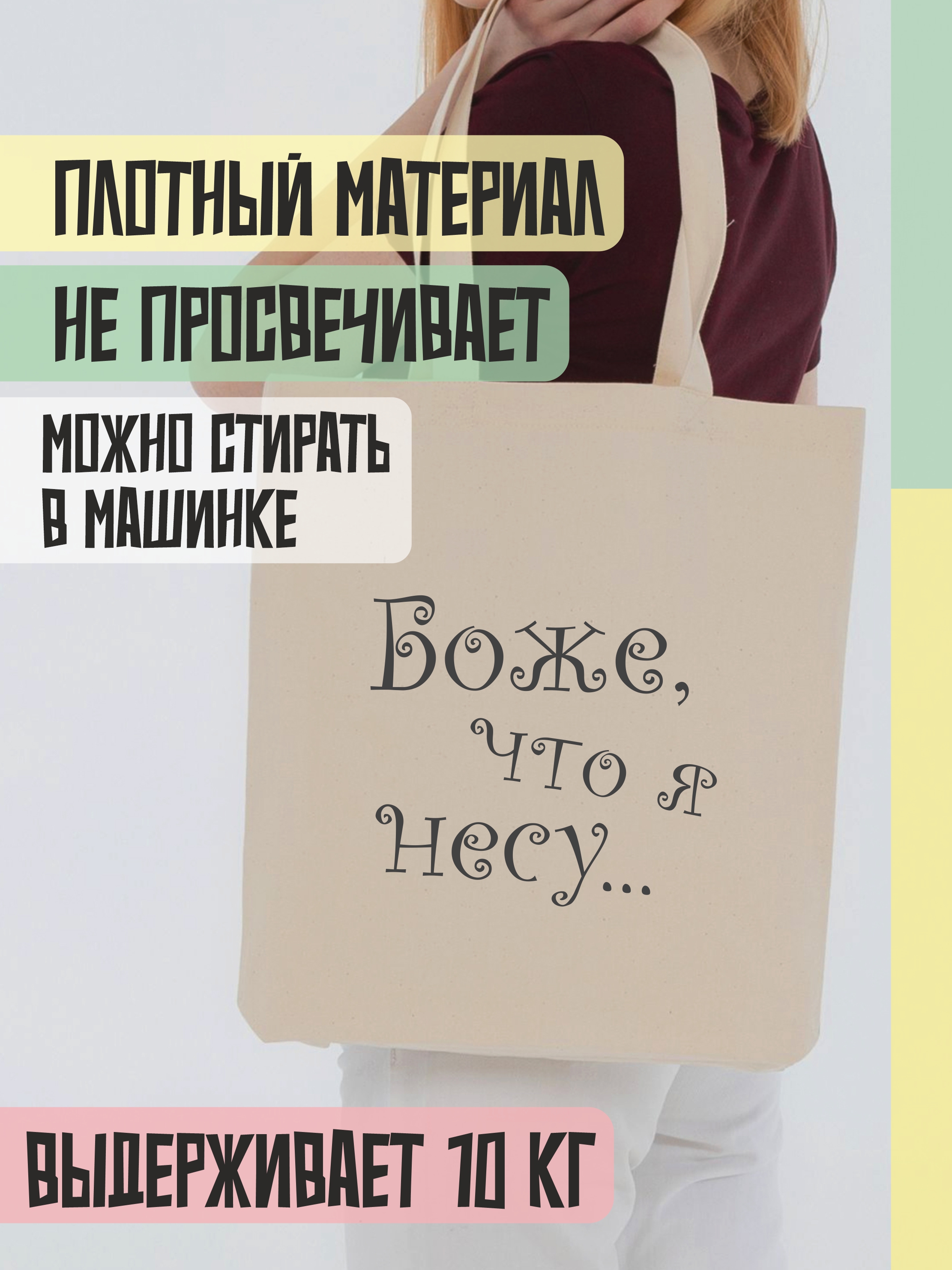 Сумка-шопер "Что я несу" кудрявый шрифт